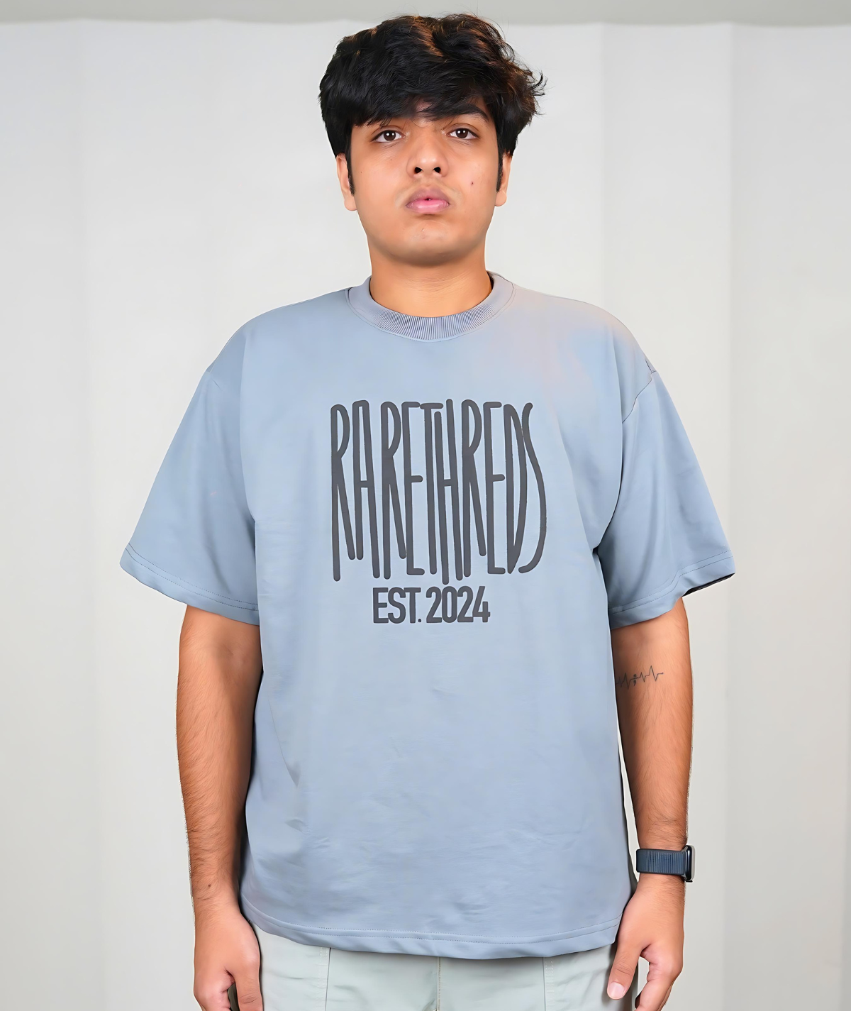 This grey T-shirt offers the perfect blend of quality and contemporary style. The oversized fit provides a relaxed yet fashionable silhouette, while the round neck ensures versatility for casual or streetwear looks. The front brand name print, made using puff screen printing, delivers a raised texture that adds depth and character to the design.